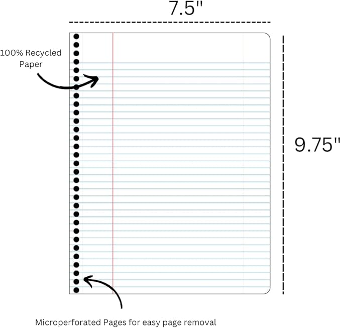 - Special Feature : 100% Recycled Paper, Printed with Soy Ink, College-Ruled Pages, Micro-Perforated Sheets, Spiral-Bound for Easy Use, Versatile for Multiple Uses 100% Recycled Paper, Printed with Soy Ink, College-Ruled Pages, Micro-Perforated Sheets, Spiral-Bound for Easy Use, Versatile for Multiple Uses