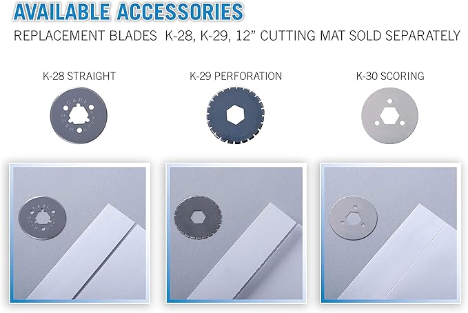 - Patent locking rail mechanism. Features handy storage compartment for extra blades and cutting mats.
