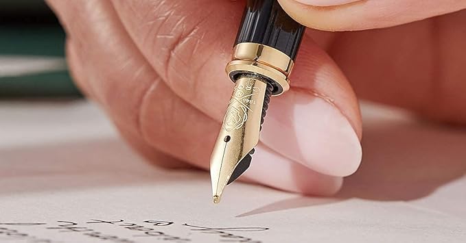 - Fountain pen with chrome and 23-karat gold plated appointments