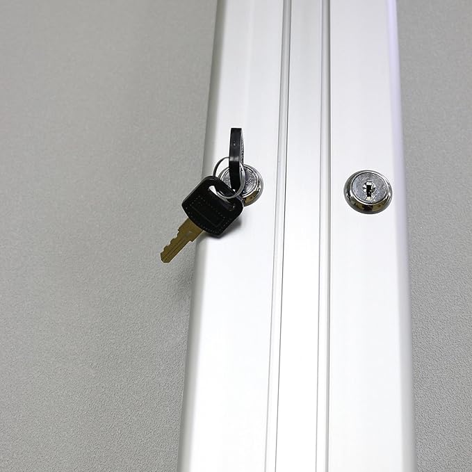 - Doors feature full-length hinges, shatter-resistant acrylic panels, flush mount locks and keys for added security.