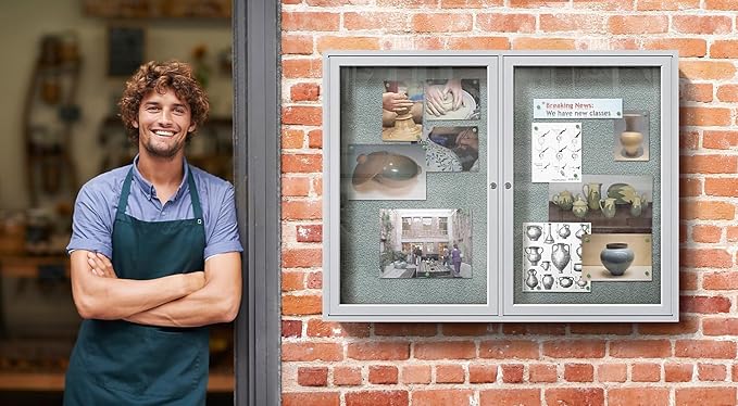 Ghent 36"x60" 2-Door Outdoor Enclosed Vinyl Bulletin Board, Shatter Resistant, with Lock, Satin Aluminum Frame - Silver (PA23660VX-193), Made in The USA