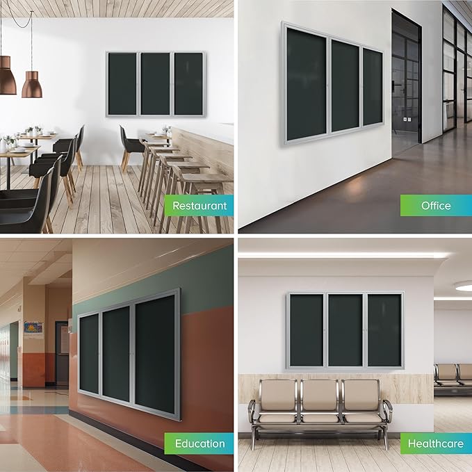 Ghent 48"x96" 3-Door Outdoor Enclosed Vinyl Bulletin Board, Shatter Resistant, with Lock, Satin Aluminum Frame - Ebony (PA34896VX-183), Made in the USA