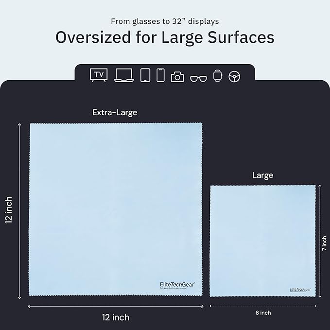Elite Tech 13-Pack Microfiber Cloth Set - Washable Oversized Cleaner for Eyeglasses, Electronics, Screens & Lenses, Dual Sizes 6"x7" & 12" x12 - Microfiber Cleaning Cloth