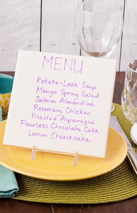- ? USE ON ANY NON-POROUS SURFACE, i.e. chalkboard labels, vinyl stickers, ceramic mugs, wine glasses, mirror, metal. Use a chalkboard sticker and easel for a decorative wedding or graduation party table marker, create menus + decorations for parties, or write directly on a mason jar to label the contents. These work beautifully with both country and traditional decor. The fine tip enables you to write clearly on even small items such as spice jars or cosmetic supplies. Unleash your inner artist!