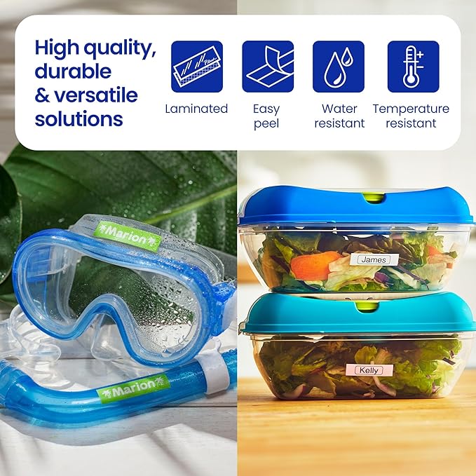 - SECURELY AFFIXES TO MULTIPLE SURFACES: Superior adhesion withstands rigorous use; labels stay put even in dishwasher or microwave; ideal for smooth or textured surfaces