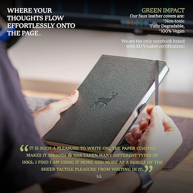 - SUSTAINABLY SOURCED, ENVIRONMENTALLY CONSCIOUS: Made from recyclable materials and FSC certified paper, our notebooks are Vegan Certified. Dingbats* Notebooks Ltd donates 2% of UK sales to WWF-UK, supporting environmental conservation.