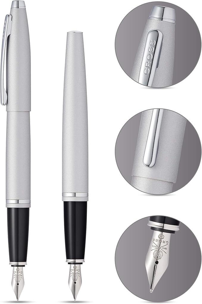 - Cross Calais fountain pen with medium nib comes in Satin Chrome