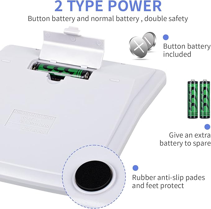 - Bi-directional Power Supply: The calculator adopts the dual power supply design of solar power and AA batteries, with low power consumption, convenient to use anytime and anywhere. The free accessory includes 2 AA batteries, the battery life is long, a single AA battery can support up to one year of use