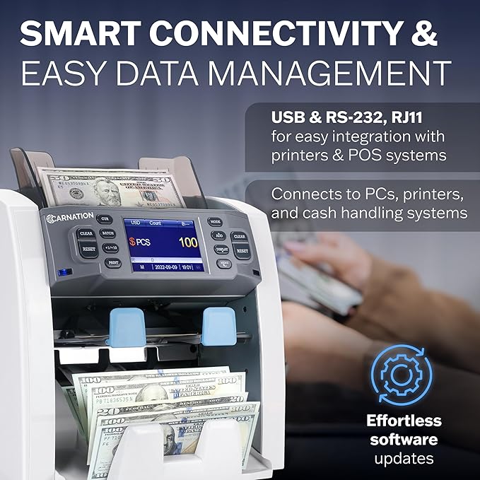 CARNATION Multi-Currency Bill Counter and Sorter with Counterfeit Detection - Money Counter Machine with MG, IR, MT, UV & CIS Image Recognition
