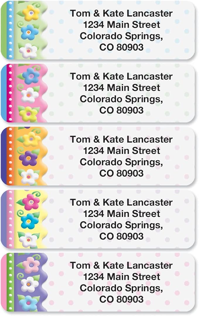 Colorful Images Frosting Flowers Rolled Personalized Return Address Mailing Labels with Dispenser, Customize with Name & Shipping Address, 250 ¾” x 2½” Self Adhesive, Easy Peel Label Roll