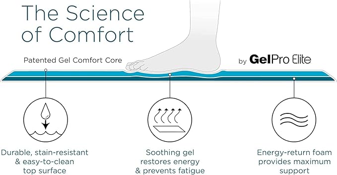 - GelPro Elite features a 3/4" dual Comfort core: Soothing gel + energy-return foam which dramatically reduces stress, fatigue & discomfort