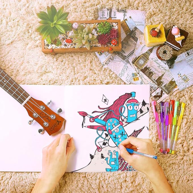 - High quality ink. With acid-free and non-toxic ink, our sparkly gel pens allow you to enjoy when Coloring Books, School Projects, Party Invites, Greeting Cards, Doodling, Letters to Friends