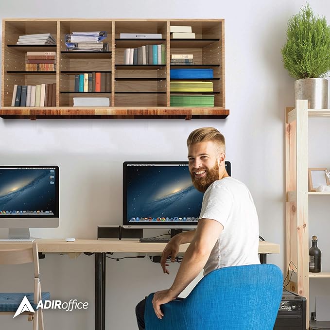 AdirOffice Wooden Adjustable Literature Organizer, 24 Compartment Office Mailbox, or Classroom Literature Organizer, Medium Oak