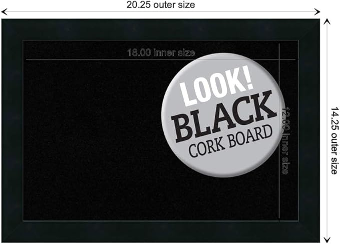 Amanti Art Black Cork Board for Wall, 14x20 Vision Board with Black Wood Frame, Small Corkboard Office Decor for Home Organization, Modern Contemporary Corkboard Pinboard to display items for home