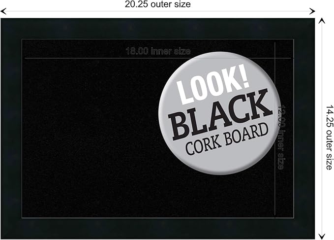 - DIMENSIONS: The overall size of this framed corkboard measures 20 in. x 14 in., including the frame. Its functional cork board area measures 18 in. x 12 in.