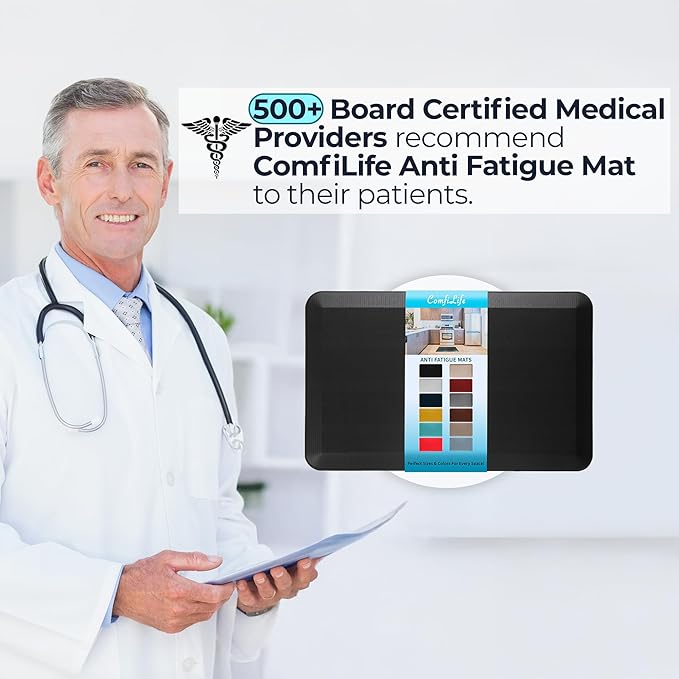 - Exceptional Comfort Anti Fatigue Mat: ComfiLife kitchen mats for floor enhance comfort while standing. It is professionally engineered and can be used as padded kitchen mat or for your standup desk that will not lose support over time. Ideal for use as a standing desk mat., kitchen mats cushioned anti fatigue, kitchen floor mat or anti-fatigue mats for kitchen floor.