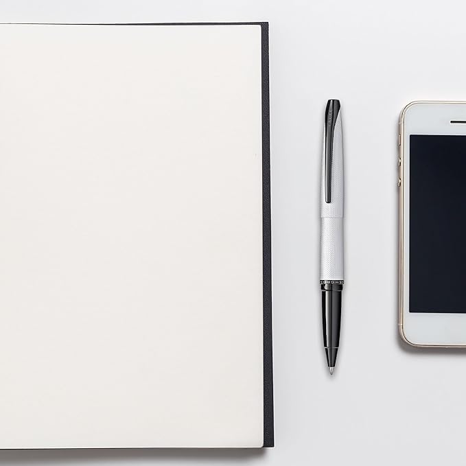 Cross ATX Refillable Rollerball Pen Presented in a Luxury Gift Box - Medium Point, Black Ink, Sandblasted Chrome