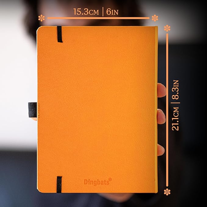 - A MULTI-FACETED JOURNAL: Use this stylish notebook as a space to organise your days and thoughts. A cute notebook that can function as both a writing journal and a memo pad, keeping your days on track and your mind in check. No matter what kind of day or week it is, you'll find something to fill the dotted pages of this medium notebook with! This handy sized Dingbats journal notebook is an excellent companion for jotting down your thoughts