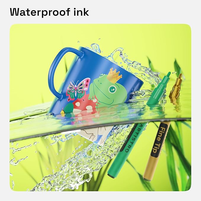 - Giftable: These permanent paint markers for plastic and glass come with neon paint markers too, so you can make stunning gifts for Christmas, birthdays, Halloween, or wedding decorations. Create with Artistro today!