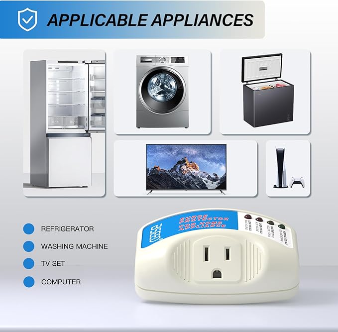 - Best Surge Protector for Home Appliance: Suitable for Refrigerator, Air Conditioners, PC, TV, Freezers, Ice Makers, Washing Machines or other valuable household electronic.