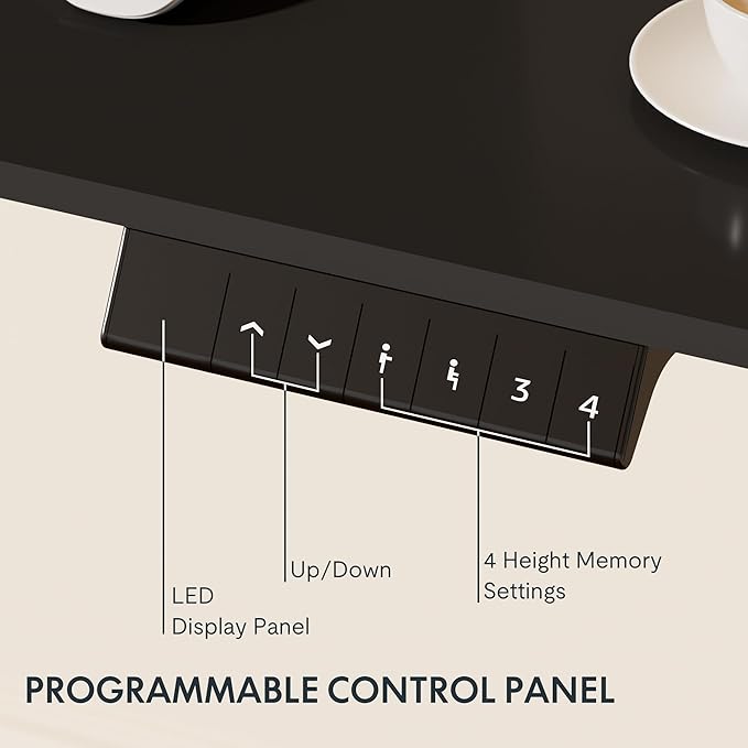 - 4 MEMORY PRESETS: Easily store and recall different height settings with our multifunctional memory system. Effortlessly switch between sitting and standing to reduce the risk of health issues like back and neck pain caused by prolonged sitting.