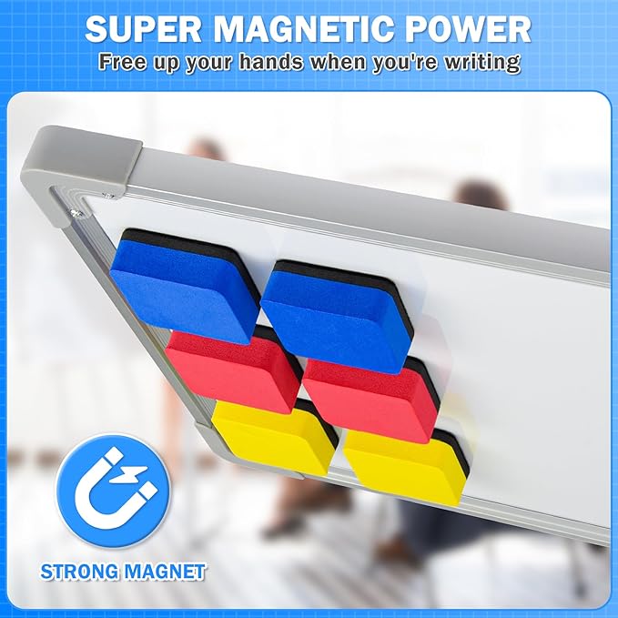 - MULTIFUNCTION: With strong absorb-ability, these erasers are good assistants for school, home, and office, because they are not just erasers, but also can be used as magnets on a whiteboard or any other magnetic surface. Great board cleanser for managers, teachers, students, and kids
