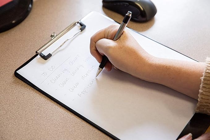 - ✅HARD BUT NOT BRITTLE: While we can’t say you won’t get a few scratches on these, we can tell you it will not chip if you accidentally drop it on the floor. These black clipboards are made of lightweight yet durable plastic; smooth, waterproof surface; suitable for indoor or outdoor use. Not thick and bulky like cheap clipboards, but they won’t bend either!