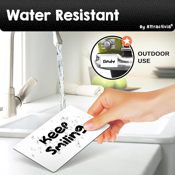 - Strong Magnetic Hold: Our dry erase magnets feature a powerful 0.02 inch thick magnetic back for instant and secure adhesion to any metallic surface, whether flat or slightly curved. Easily attach our dry erase stickers labels and remove without residue, ensuring a firm grip even on rounded surfaces.