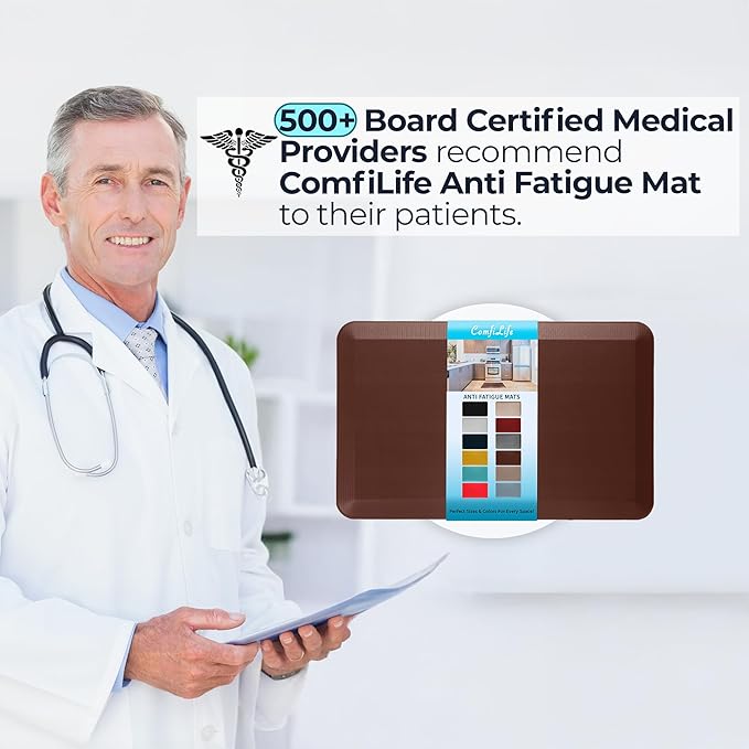 ComfiLife Anti Fatigue Floor Mat – 3/4 Inch Thick Kitchen Mats for Floor, Standing Desk Mat, Kitchen Rug – Comfort at Home, Office – Durable – Stain Resistant – Non-Slip Bottom (20" x 39", Brown)