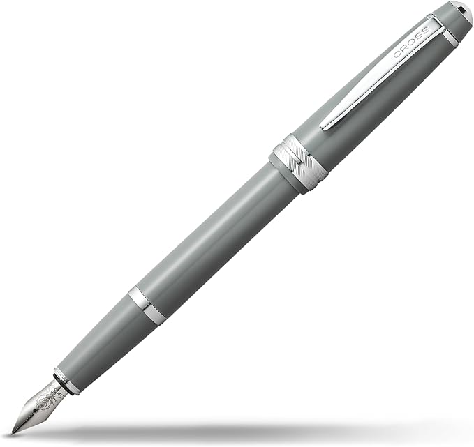 Cross Bailey Light Refillable Fountain Presented in a Everyday Gift Box - Medium Point, Black Ink, Polished Gray
