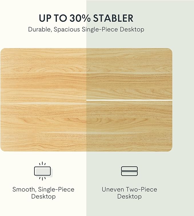 - 1" THICK ONE-PIECE DESKTOP: Crafted from FSC-Certified wood, this seamless desktop offers a completely smooth surface that elevates your workspace. Its one-piece design not only enhances aesthetics but also delivers a sturdier and more stable structure compared to spliced tabletops.