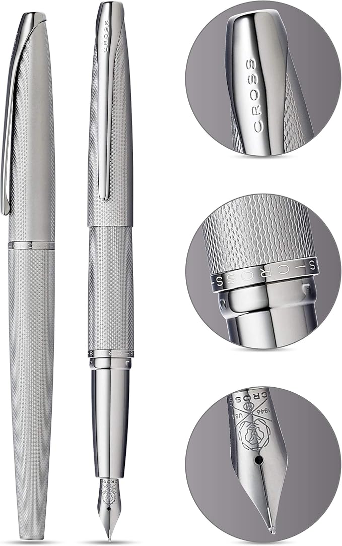 Cross ATX Refillable Fountain Presented in a Luxury Gift Box - Medium Point, Black Ink, Sandblasted Titanium Gray