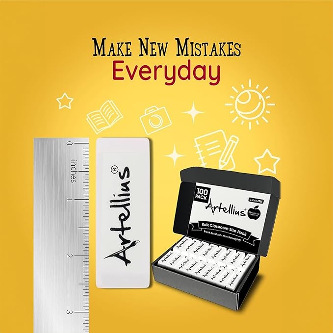 - Quality White Erasers: Artellius White Erasers are perfect for all your erasing needs, whether in the classroom or office. This bulk set of erasers ensures you're never caught without a trusty white eraser when you need one