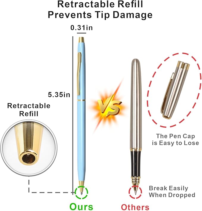 - Comfortable Medium Point Pen: Perfect weight and round barrel for writing comfort, meet all your needs for signing contracts, journaling, or marathon study sessions. These metal pen is built with metal construction for a long time use