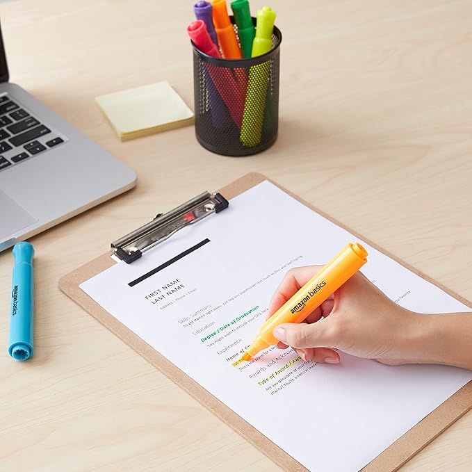 Amazon Basics Highlighters 12 Pack, Assorted Colors, Chisel Tip,Bible Highlighter,Office and School Supplies