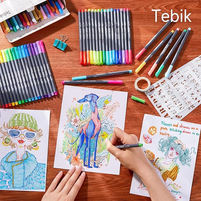 - High Quality Water-Based Ink: Our fineliner pens filled with top quality ink that flows easily, every pen will provide smooth writing without worrying that the ink will dry out prematurely. No bleeding, no smearing, perfect for journal & planner. The ink is water-based and acid free, our 100 fineliner pens can be enjoyed by everyone-completely kid safe, conforms to ASTM D-4236 & EN71.