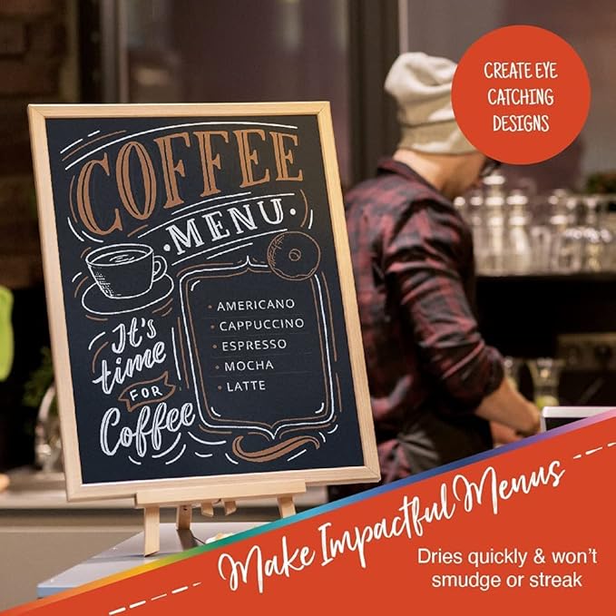 - Vibrant Colors: The liquid chalk markers for chalkboard signs come in 12 colors with 1 white chalk marker. They have 6mm reversible tips (round or chisel) to create different designs that extend the life of each neon dry erase marker.