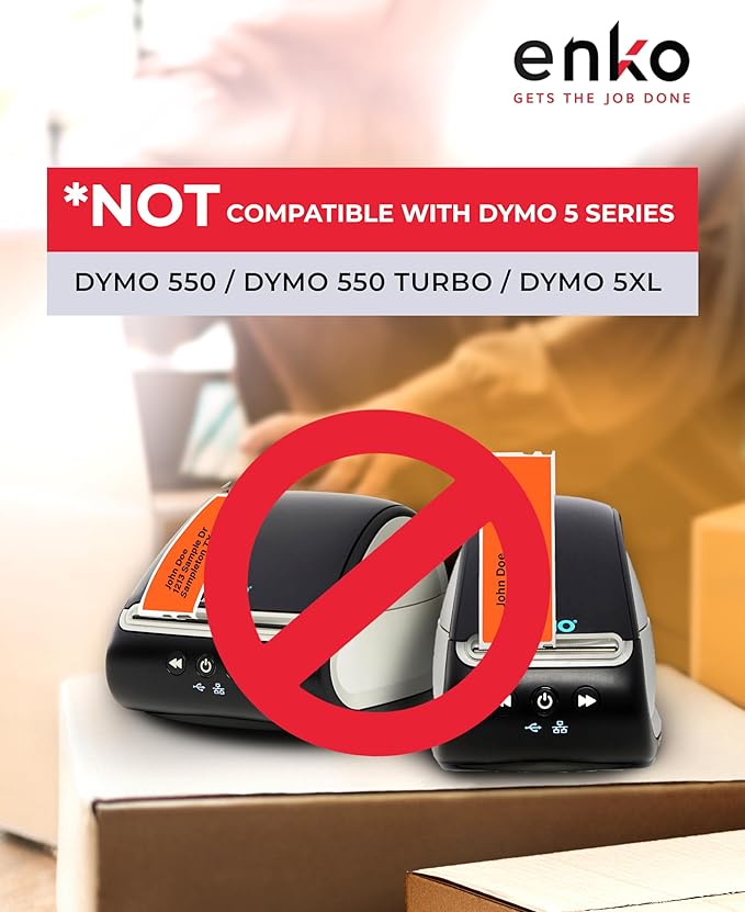 - Compatible with Rollo Printers ; Dymo Printers LabelWriter: 300, 310, 315, 320, 330, 400, 400 Duo, 400 Twin Turbo, 450, 450 Duo, 450 Turbo, 450 Twin Turbo, 4XL, EL40, EL60, SE300, SE450 ; CoStar LabelWriters: XL, XL+, BC, BC+, Turbo, SE200, SE250, ACII 200 / ASCII 250 ; All Seiko ; MUNBYN ; Compatible with Phomemo ; Jadens ; Offnova ; iDPRT ; Not Compatible with Dymo 5XL & Dymo 550/Turbo