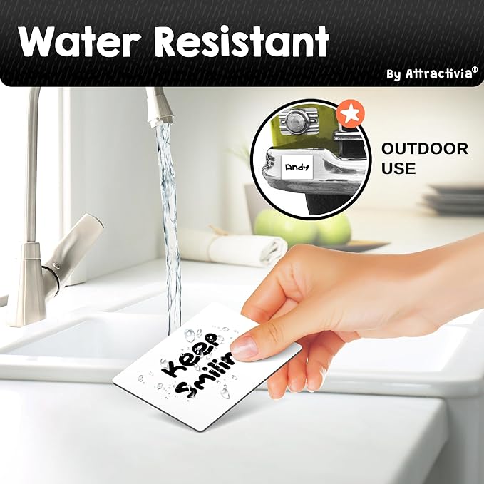 - Rewritable 100,000+ Times: Unlike flimsy labels that degrade over time, our white board magnetic labels are engineered to be erased and rewritten over 100,000 times without losing quality. The advanced coating prevents ink buildup, so every wipe restores a brand new surface, saving you money while reducing waste!