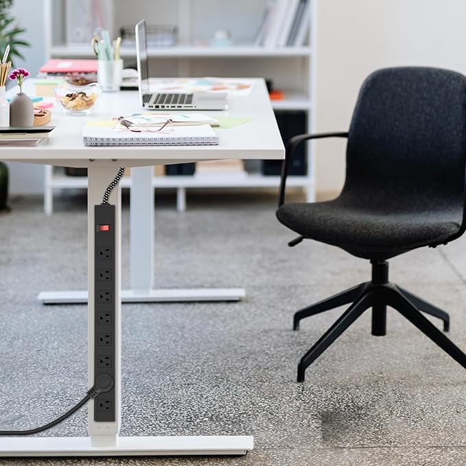 - 【8 in 1 Power Strip】This mountable power strip features 8 outlets and 1 switch, providing you with multiple options to connect your devices. With a 6 feet 14AWG braided cord, it ensures durability and easy reach to power sources. Rated at 1200J, 1875W, 15A, 125V, 60Hz, and with SGS certification, it guarantees safe and reliable charging.