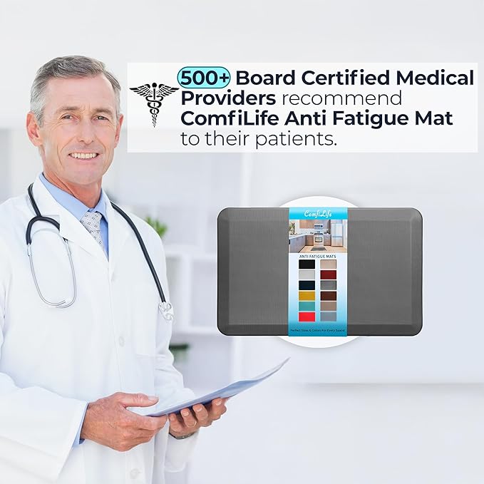 - Exceptional Comfort Anti Fatigue Mat: ComfiLife kitchen mats for floor enhance comfort while standing. It is professionally engineered and can be used as padded kitchen mat or for your standup desk that will not lose support over time. Ideal for use as a standing desk mat., kitchen mats cushioned anti fatigue, kitchen floor mat or anti-fatigue mats for kitchen floor.