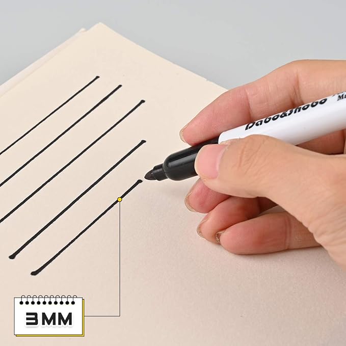 - CLEVER DESIGN:The barrel of permanent marker is long and round, which is convenient to hold and comfortable grip. Covering the cap can prevent the ink from drying when not use.