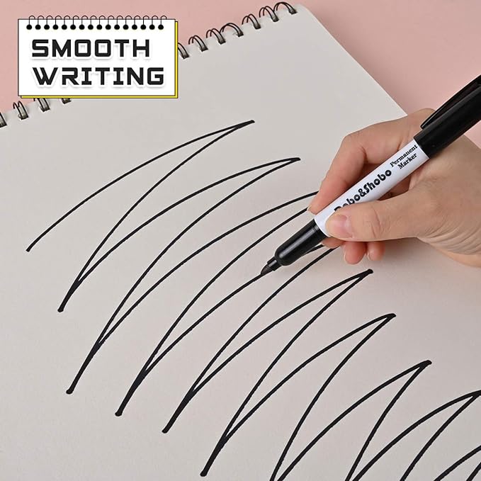 Dabo&Shobo 60 Pack Black Permanent Markers, Fine Point, Assorted Colors, Works on Plastic,Wood,Stone,Metal and Glass for Doodling, Coloring