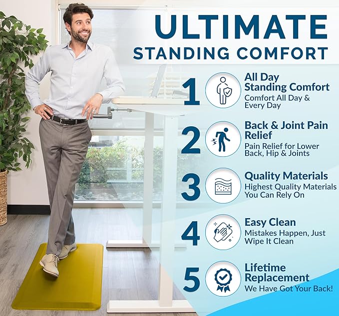 ComfiLife Anti Fatigue Floor Mat – 3/4 Inch Thick Kitchen Mats for Floor, Standing Desk Mat, Kitchen Rug – Comfort at Home, Office – Durable – Stain Resistant – Non-Slip Bottom (24" x 70", Mustard)