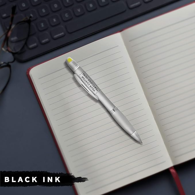 DISCOUNT PROMOS 100 Marathon Gel Highlighter Pens Pack - Customizable Text, Logo - Twist Mechanism, Ballpoint - Silver