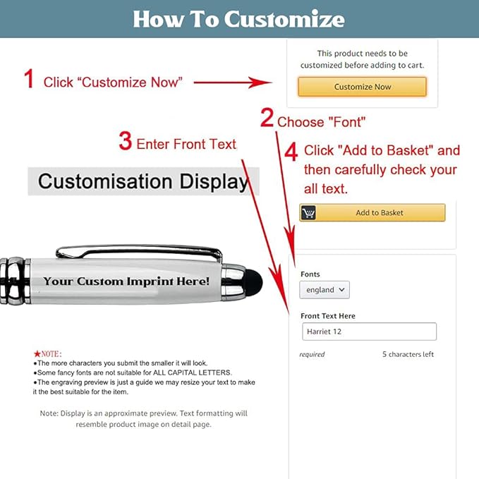 - FREE PERSONALIZATION You can have up to 40 characters (including spaces) on each line, up to 2 customized lines are free. we use laser engraving technology to engrave the text on the pen without fading. As long as you click the "Customize" option, you can easily customize it. Beautiful appearance, suitable for gift.