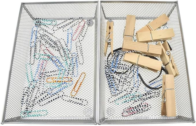 HAHIYO Stackable Mesh Tray Cup 9 x 6 x 2 inches Sturdy Container for Desk Drawer Organizer Collection for Home Office School kitchen Soft Foam Feet No Sharp Edges 1 Pack Silver
