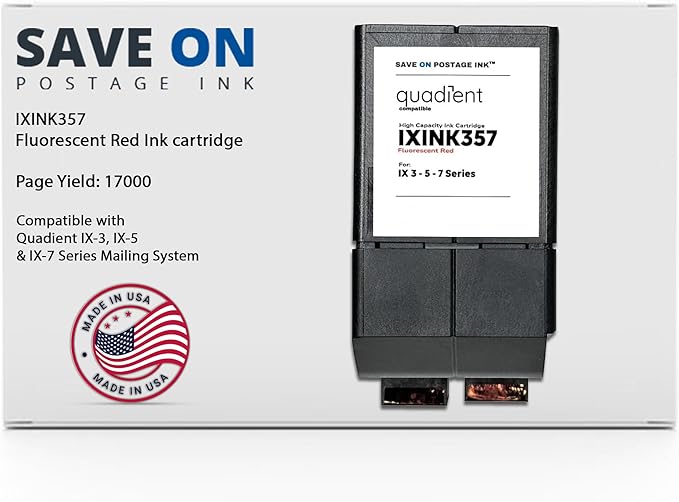 - 𝐐𝐮𝐚𝐥𝐢𝐭𝐲 & 𝐏𝐞𝐫𝐟𝐨𝐫𝐦𝐚𝐧𝐜𝐞: Our IXINK357 ink cartridge for printer offers a high yield of up to 17,000 pages. This cartridge provides a reliable and efficient solution for your Quadient IX3, IX5, and IX7 postage meter machine needs.