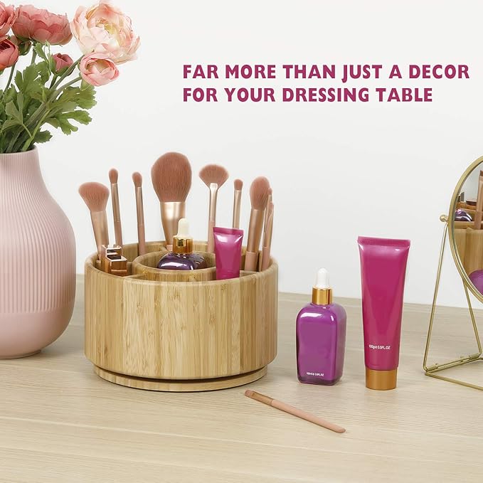 Bamboo Rotating Pencil Holder for Desk - Pen Holder Desk Organizer with 7 Compartments, Office Supplies Desktop Storage Caddy for Colored Pencils, Markers, Crayon, Comestics and Cutlery etc.