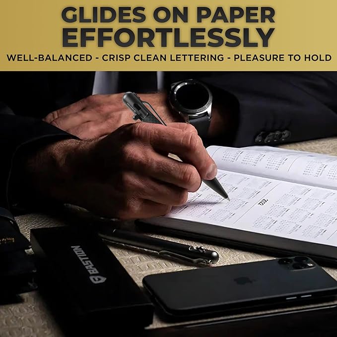 BASTION® Luxury Carbon Fiber Bolt Action Pen Durable Professional Ballpoint Pen for Travel, School and Work Birthday Gift Idea - Black Stainless Steel
